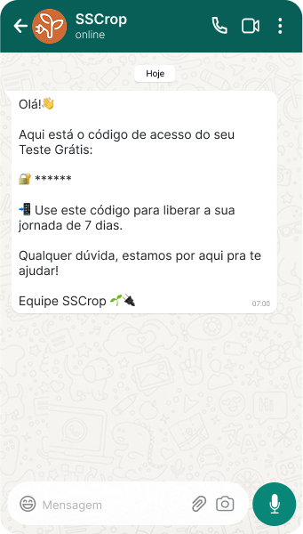 Digite o código abaixo para validar seu acesso e começar a testar o SSCrop agora mesmo!